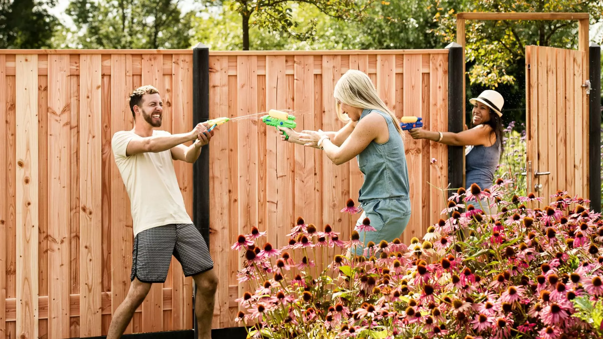 Ongestoord in de tuin zitten met een schutting van Hillhout of Woodvison