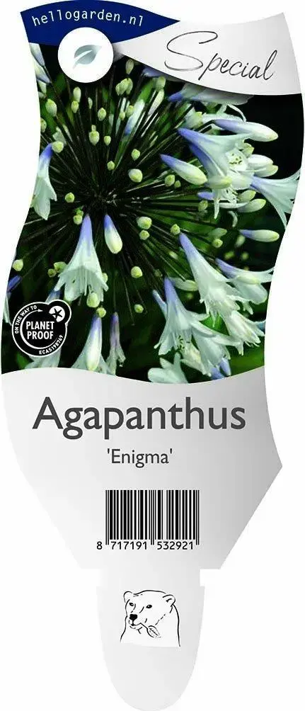 De vaste plant Agapanthus 'Enigma' (Afrikaanse lelie) is een bijzondere planten. Plant de Agapanthus 'Enigma' op een plek met zon en plaats maximaal 5 planten per vierkante meter. Deze plant heeft een maximale hoogte van 70 cm als volwassen plant. De bloeiperiode is in juli, augustus.