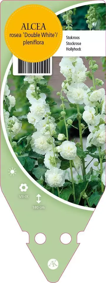 De vaste plant Alcea Rosea Double White (Stokroos) is een vlinderlokker. Plant de Alcea Rosea Double White op een plek met zon en plaats maximaal 5 planten per vierkante meter. Deze plant heeft een maximale hoogte van 1,6 m als volwassen plant. De bloemkleur is wit.