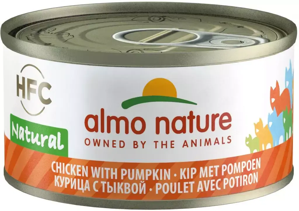 Almo Nature HFC Natural Kip & Pompoen is een aanvullend natvoer voor volwassen katten dat bekendstaat om zijn pure smaak en hoge vleespercentage. Het recept is bereid met natuurlijke, verse kip die van oorsprong geschikt is voor menselijke consumptie. De ingrediënten worden geconserveerd in hun eigen kookbouillon, waardoor smaak en voedingsstoffen optimaal behouden blijven.