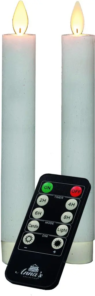 Set van twee Anna's Collection LED dinerkaarsen flame effect rustiek wit