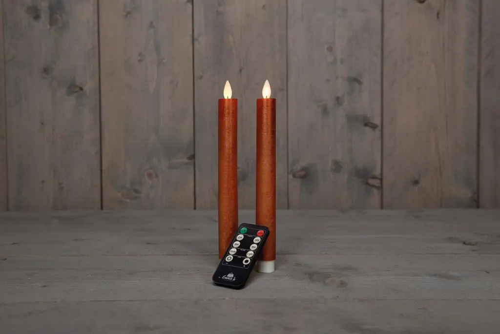 Set van twee Anna's Collection LED dinerkaarsen flame effect rustiek koper
