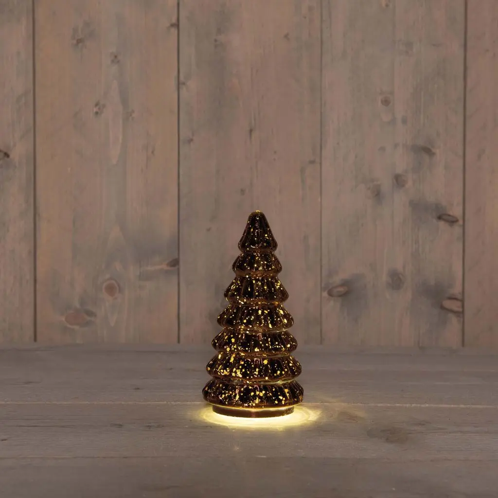 Anna’s Collection LED glazen kerstboompje – ca. 9,5 × H 18,5 cm, metallic brons, warm wit