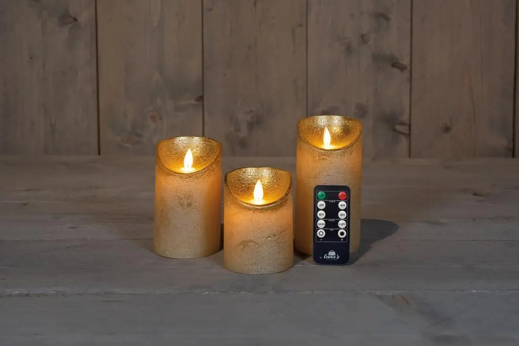 Set van drie Anna's Collection LED kaarsen flame effect rustiek goud