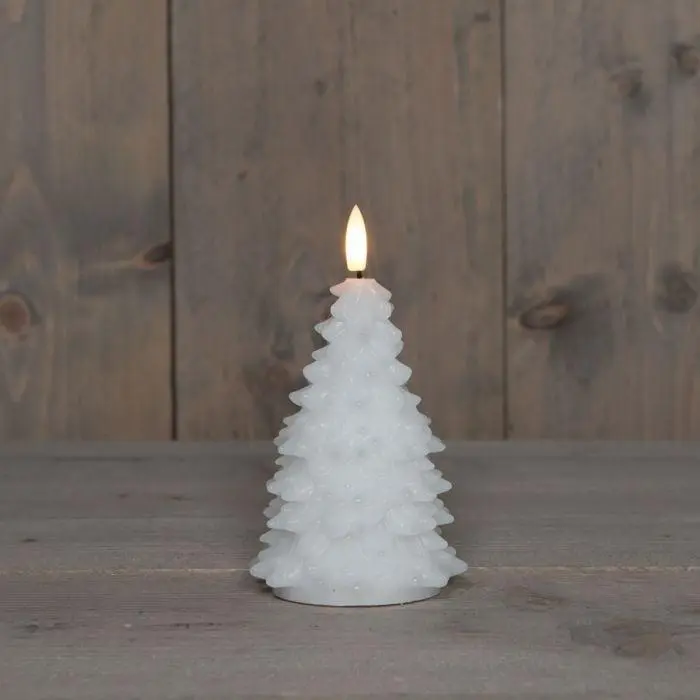 Anna’s Collection LED‑kaars – wax kerstboom met 3D-vlam, wit, Ø 8,5 × H 15 cm