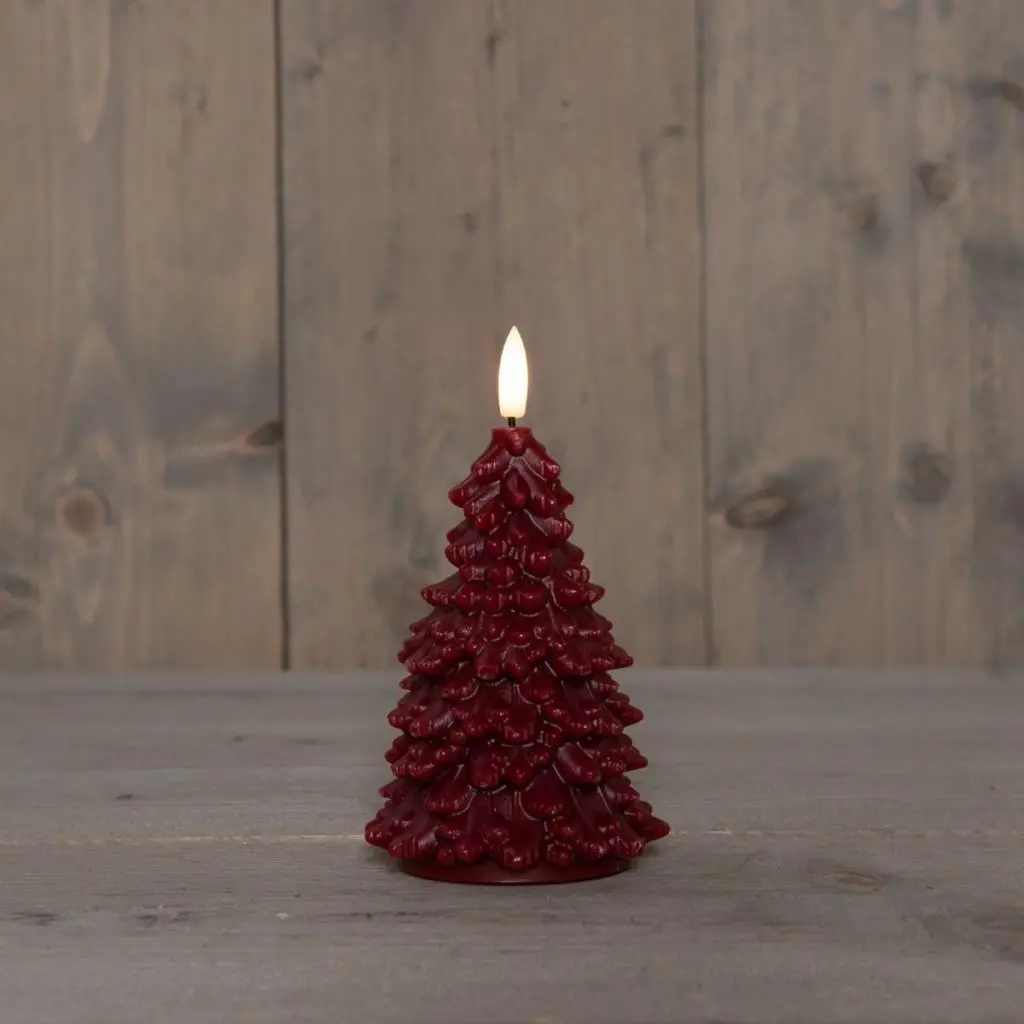 Luxe bordeauxkleur met een decoratieve 3D-vlam, perfect gecombineerd met kerstdecor