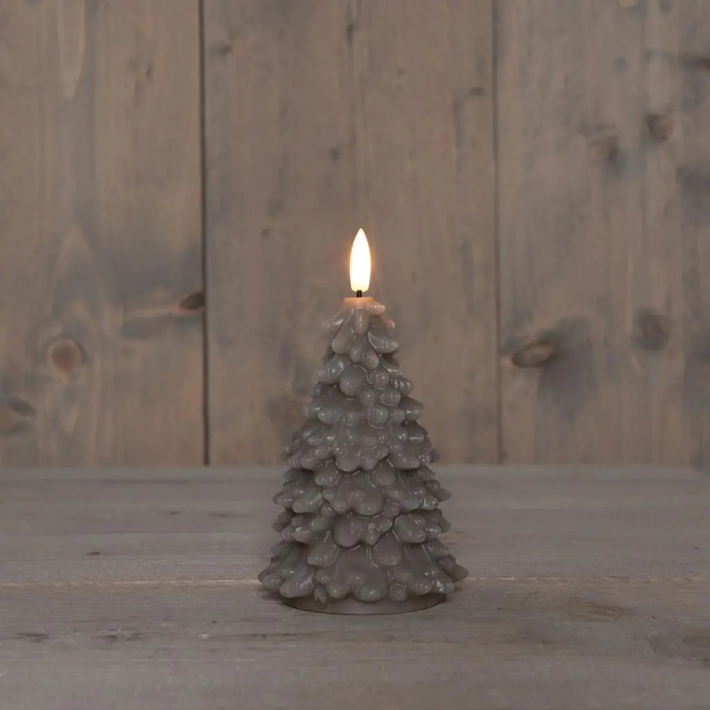 Anna’s Collection LED‑kaars – wax kerstboom met 3D‑vlam, taupe, Ø 8,5 × H 15 cm