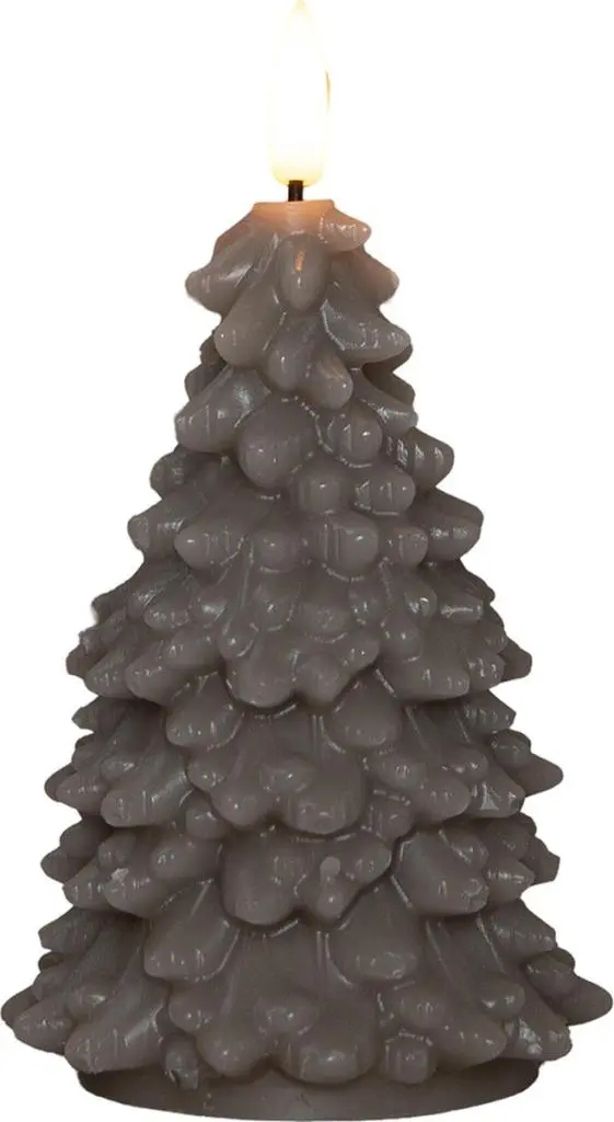 Deze elegante LED‑kaars in de vorm van een kerstboom is subtiel uitgevoerd in taupe en voorzien van een decoratieve 3D‑vlam. De frisse kleur en zachte verlichting maken dit object perfect geschikt voor een stijlvolle, moderne kerstdecoratie.