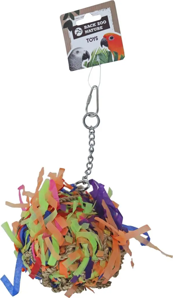 De Back Zoo Nature Super Shredding ball small is een bal met papieren slierten voor veel speelplezier voor de kromsnavels. De bal is gemaakt van zeewier en dus 100% natuurlijk. Door middel van een handige sluiting gemakkelijk op te hangen.