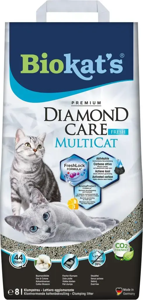 - Biokat's Diamond Care MultiCat fresh is bij uitstek geschikt voor de hoge eisen van meerkatten huishoudens.