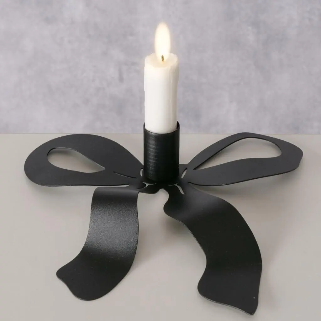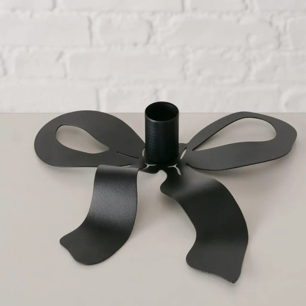 Boltze Home kandelaar ijzer boucle strik 20x18.5x4cm zwart