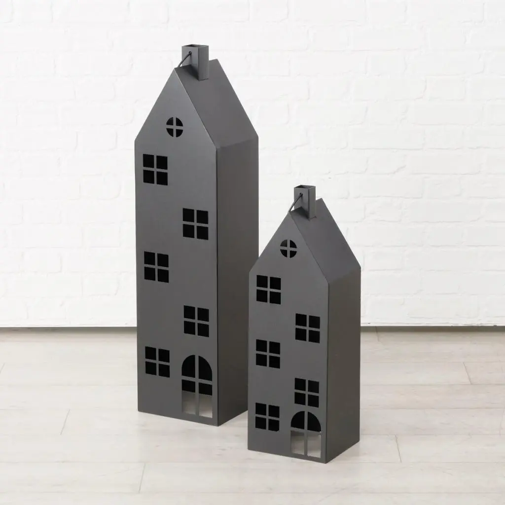 Boltze Home lantaarn ijzer alba huis 24x20x96cm zwart