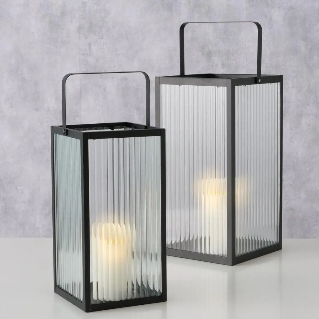 Boltze Home lantaarn ijzer fedora 16.5x17x30.5cm zwart