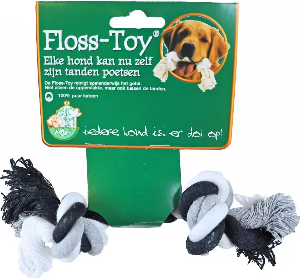 Elke hond kan nu zelf zijn tanden poetsen. De Floss-toy reinigt spelenderwijs het gebit. Niet alleen de oppervlakte, maar ook tussen de tanden. Iedere hond is er dol op!
