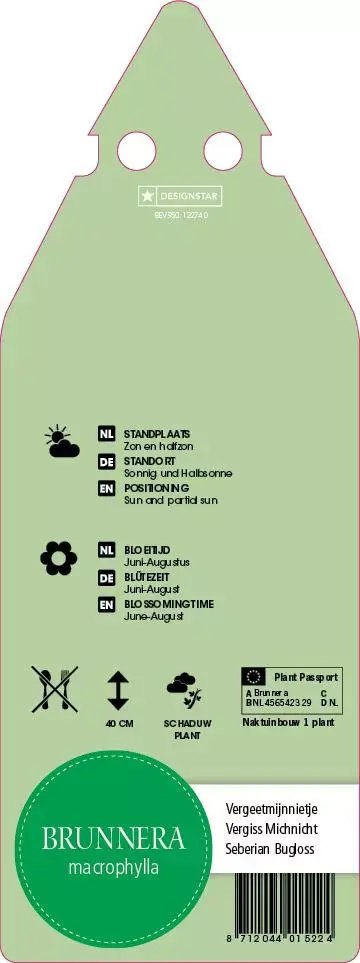 De vaste plant Brunnera Macrophylla (Kaukasisch vergeet mij nietje) is een bodembedekker. Plant de Brunnera Macrophylla op een plek met schaduw en plaats maximaal 5 planten per vierkante meter. Deze plant heeft een maximale hoogte van 40 cm als volwassen plant. De bloemkleur is blauw.