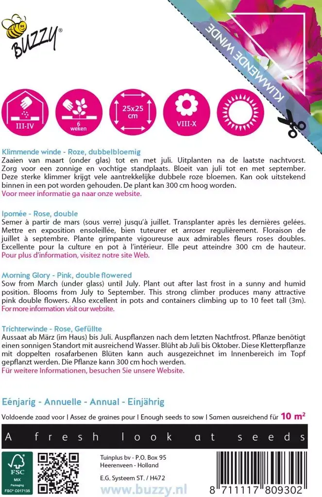 Buzzy zaden Climbing Flowers, Ipomoea Dubbel Rose koop je hier veilig online in de webshop van ons tuincentrum waarbij wij garant staan voor een goede service, beloofd! Heb jij nog vragen over Buzzy zaden Climbing Flowers, Ipomoea Dubbel Rose of de levering ervan? Neem dan gerust contact op met onze klantenservice of kom langs in ons tuincentrum in Amsterdam waar onze medewerkers je graag verder helpen. Tuincentrum Osdorp, alles voor huis, tuin en dier :)