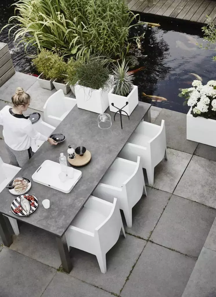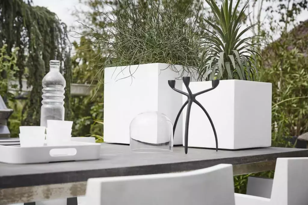 De Capi lux terrazzo heeft een modern en glad design en is ideaal om met een mooi boompje of weelderige grassoort in je tuin of op je dakterras te plaatsen. Of zet hem eens neer op je balkon en zie hoe de plantenbak in de kleur wit van Capi Europe zorgt voor een gevoel van luxe en rust. De vierkante bloembakken doen je denken aan klassiek terrazzo, maar deze graniet look bloempotten zijn gelukkig van lichtgewicht kunststof!