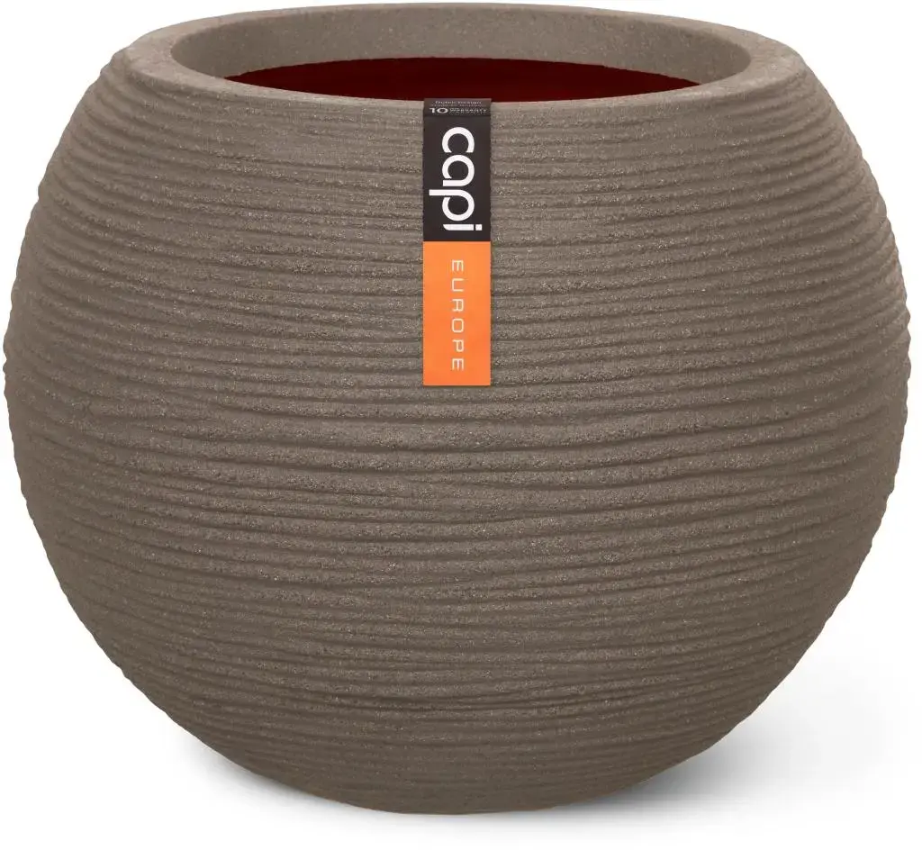 Deze prachtige bloempot uit de Capi Nature Rib serie in de kleur warme taupe heeft een diameter van 40 cm en is 32 cm hoog. De bijzondere ribstructuur geeft een natuurlijke look en speelse touch aan deze egg potten. De Capi pot bol bol Rib is beschikbaar in zachte aardse kleuren en past in elk soort interieur. Ook in je tuin of op je terras zou deze stijlvolle designpot niet misstaan. Het duurzame kunststof, lijkend op natuursteen, maakt dat de pot onbreekbaar, kleurvast en vorstbestendig is. Daarom geeft Capi Europe maar liefst een 10-jaars garantie op de bloempot.