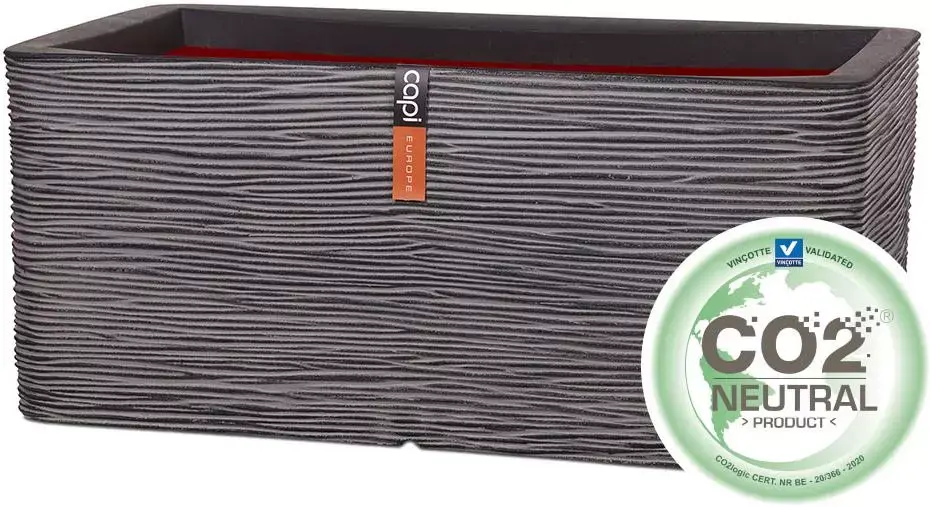 Deze robuuste plantenbak uit de Capi Nature Rib serie in de kleur antraciet heeft een afmeting van 73x39x32 cm. De bijzondere ribstructuur geeft een natuurlijke look en speelse touch aan de rechthoekige plantenbak. Deze langwerpige Capi Nature Rib plantenbak is beschikbaar in zachte aardse kleuren en past in elk soort interieur. Op je terras of balkon creëer je met de stijlvolle designpot een groene afscheiding met een luxe uitstraling. Het duurzame kunststof, lijkend op natuursteen, maakt dat de kubus pot onbreekbaar, kleurvast en vorstbestendig is. Daarom geeft Capi Europe maar liefst een 10-jaars garantie op de bloembak.