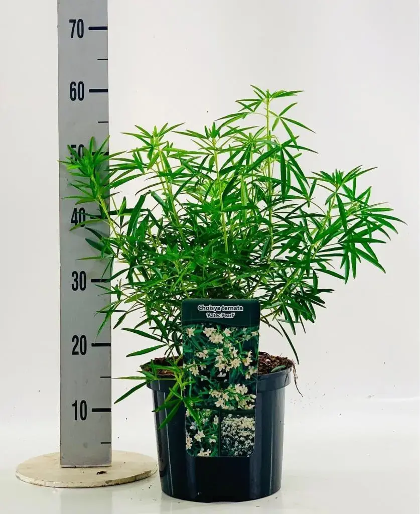 Choisya ternata 'Aztec Pearl' (Mexicaanse oranjebloesem) 60cm koop je hier veilig online in de webshop van ons tuincentrum waarbij wij garant staan voor een goede service, beloofd! Heb jij nog vragen over Choisya ternata 'Aztec Pearl' (Mexicaanse oranjebloesem) 60cm of de levering ervan? Neem dan gerust contact op met onze klantenservice of kom langs in ons tuincentrum in Amsterdam waar onze medewerkers je graag verder helpen. Tuincentrum Osdorp, alles voor huis, tuin en dier :)