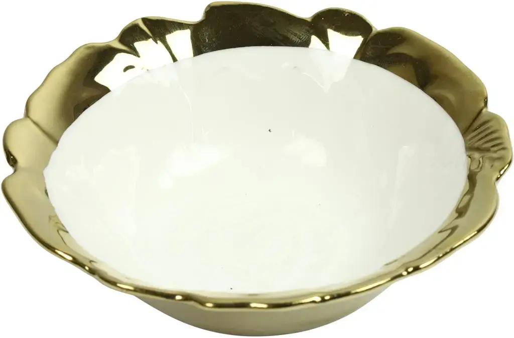Countryfield dessertkom keramiek vere 10x3.5cm wit, goud