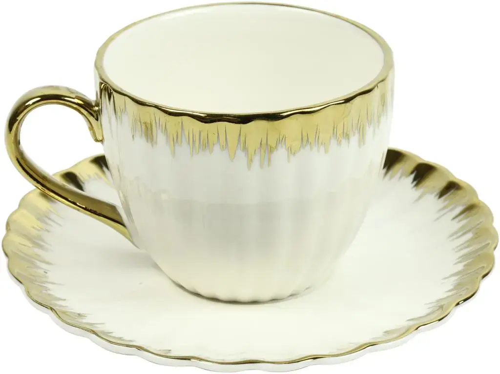 Countryfield koffiekop met schotel keramiek charlotte 13.5x1.5cm wit, goud