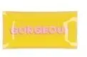 Het ontwerp werkt met een zonnige gele basiskleur en lichte accenten langs de zijkanten, waardoor het geheel speels oogt zonder druk te worden. In het midden staat de tekst “GORGEOUS” in een contrasterende, opvallende kleur, met ronde lettervormen die het bordje een zachte, retro uitstraling geven. Door die duidelijke typografie blijft de tekst goed leesbaar en komt het bordje als decoratief statement mooi tot zijn recht.