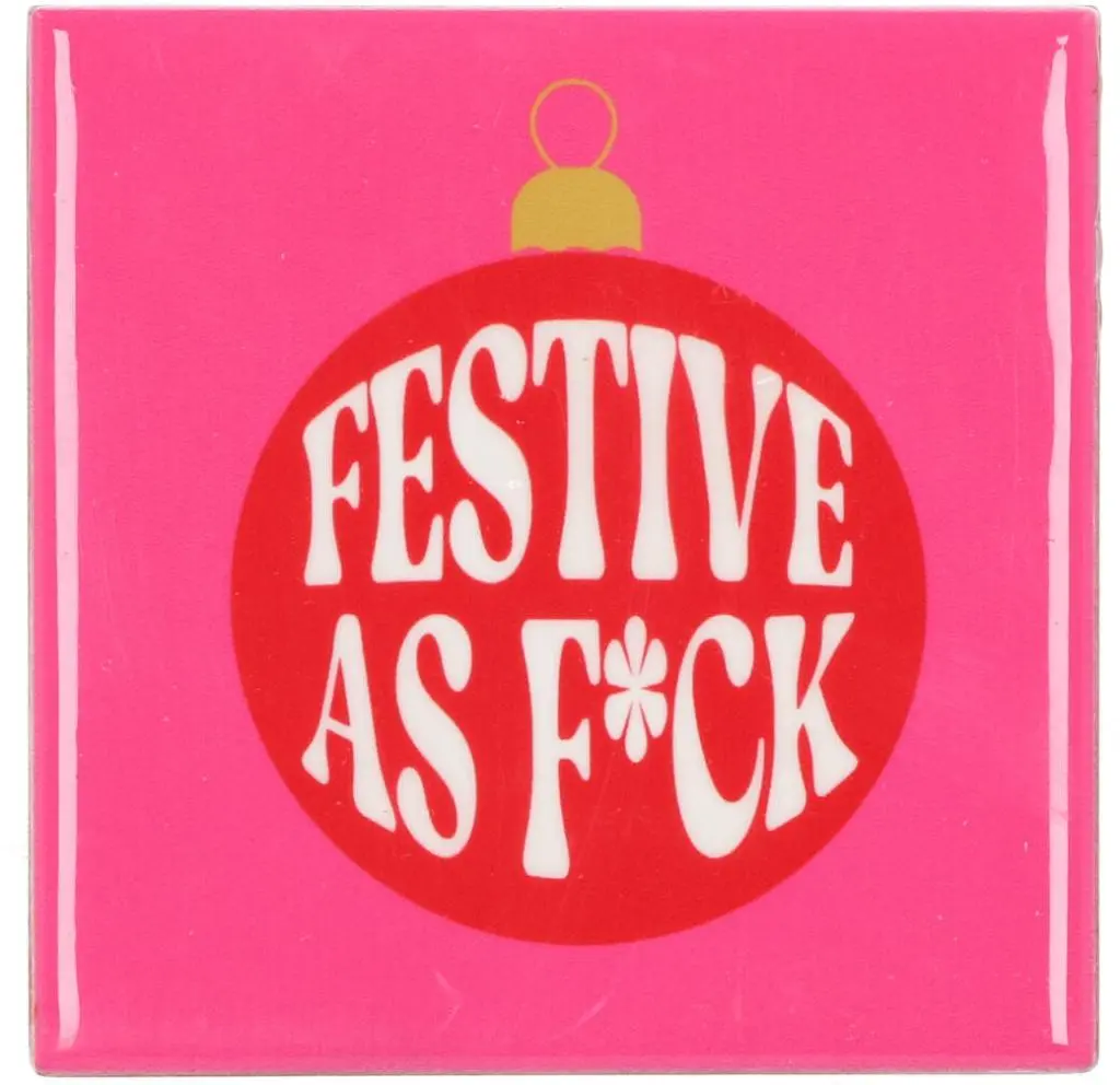 Daan Kromhout Design tegeltje keramiek festive as f*ck 10x10cm roze