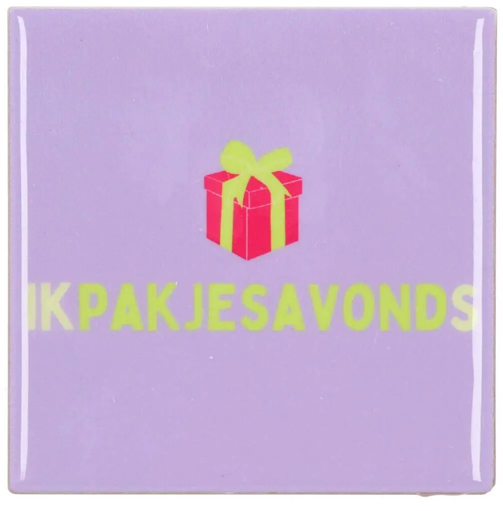 Daan Kromhout Design tegeltje keramiek ikpakjesavonds 10x10cm paars