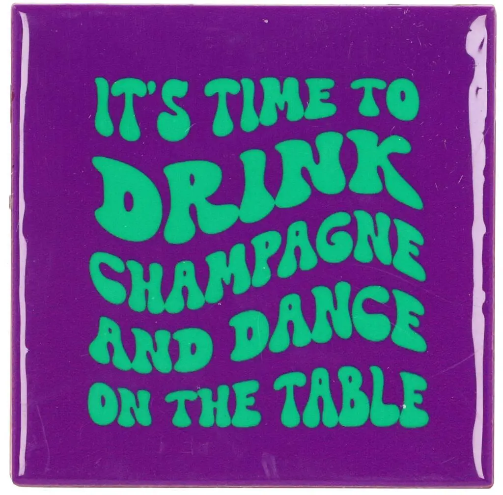 Daan Kromhout Design tegeltje keramiek it's time to drink 10x10cm paars