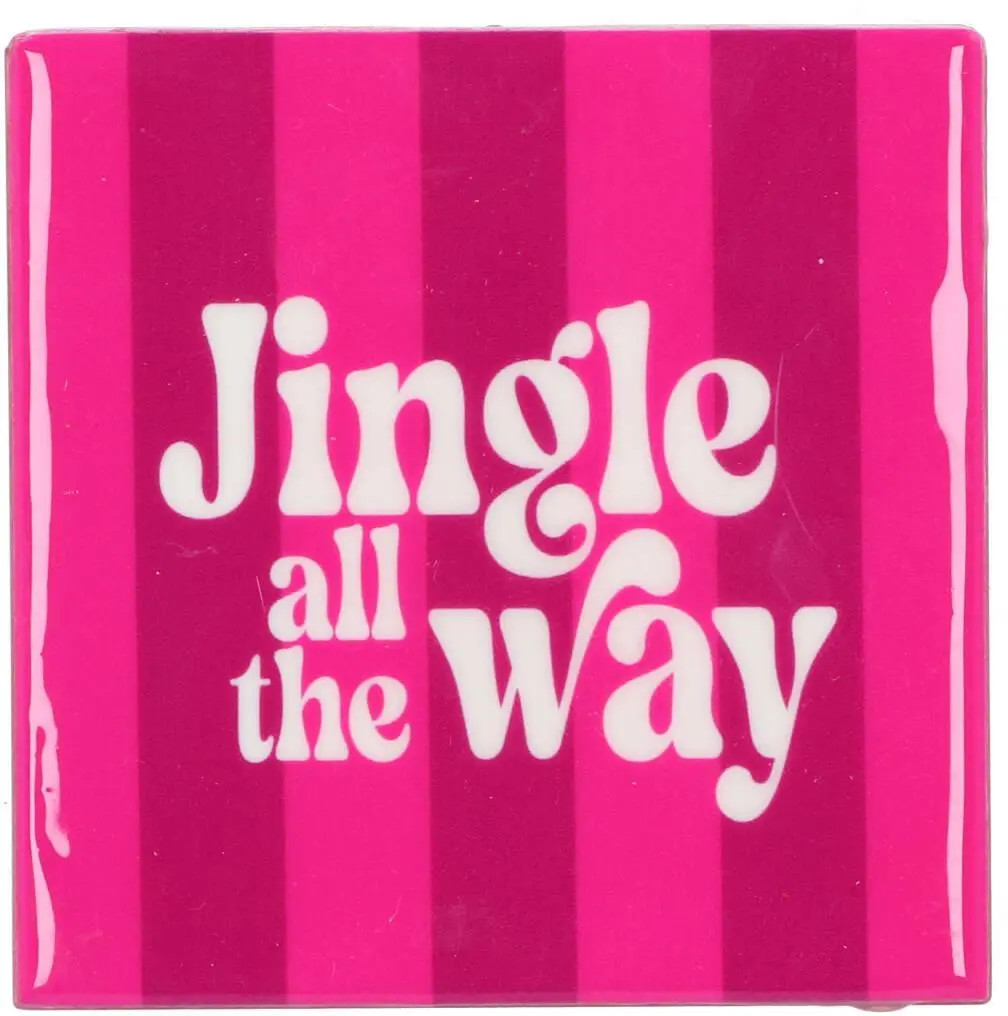 Daan Kromhout Design tegeltje keramiek jingle all the way 10x10cm roze