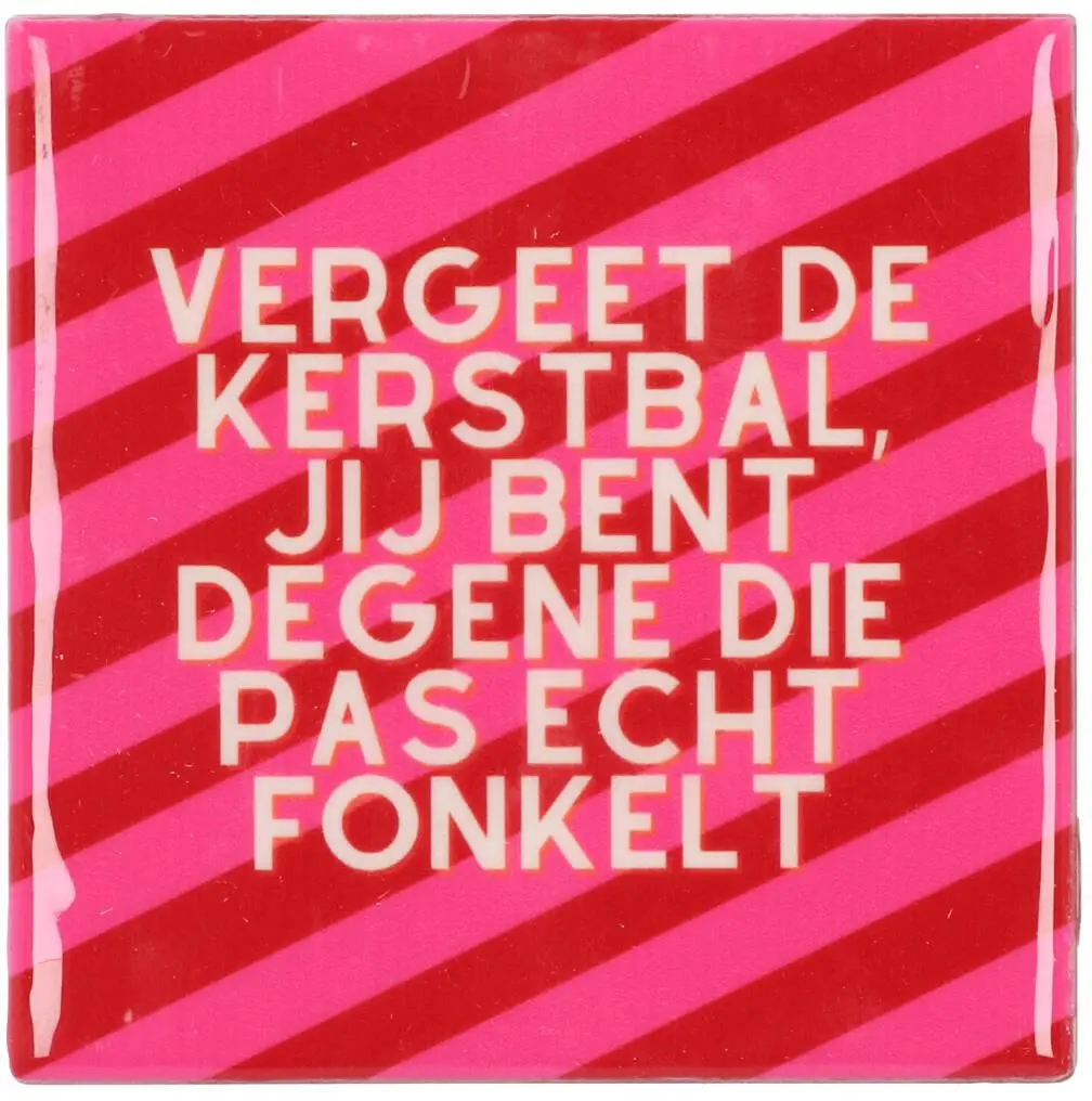 Daan Kromhout Design tegeltje keramiek vergeet de kerstbal 10x10cm roze