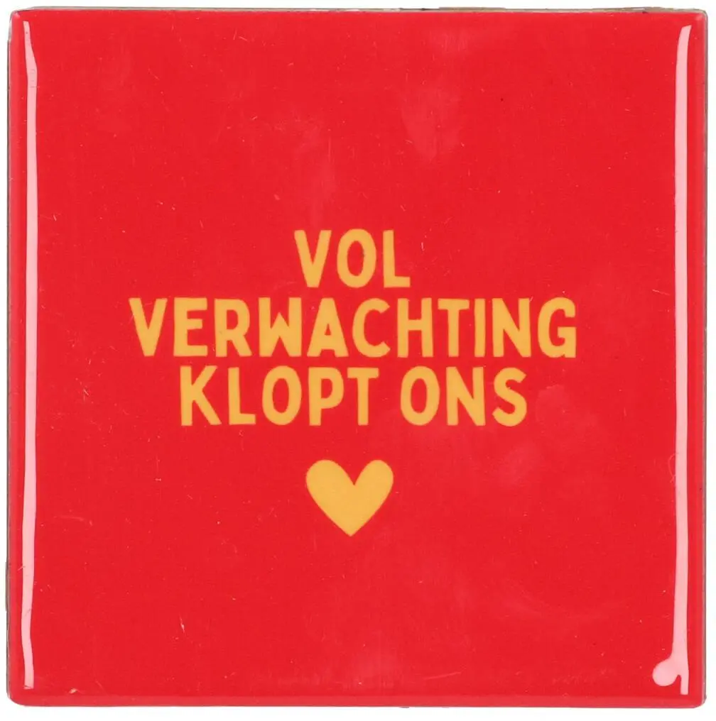 Daan Kromhout Design tegeltje keramiek vol verwachting 10x10cm rood