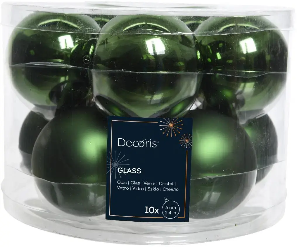 Decoris glazen kerstbal 6cm dennengroen 10 stuks