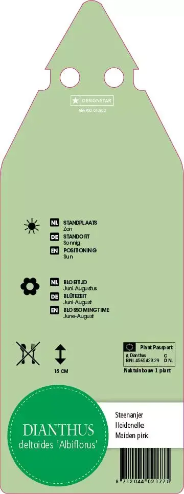 De vaste plant Dianthus Deltoides Albiflorus (Steenanjer) is een bodembedekker. Plant de Dianthus Deltoides Albiflorus op een plek met zon en plaats maximaal 7 planten per vierkante meter. Deze plant heeft een maximale hoogte van 15 cm als volwassen plant. De bloemkleur is wit.