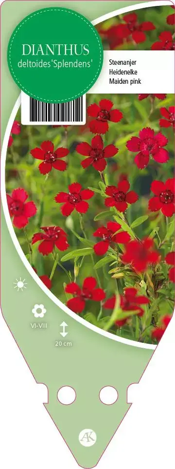 De vaste plant Dianthus Deltoides Splendens (Steenanjer) is een bodembedekker. Plant de Dianthus Deltoides Splendens op een plek met zon en plaats maximaal 7 planten per vierkante meter. Deze plant heeft een maximale hoogte van 15 cm als volwassen plant. De bloemkleur is rood.