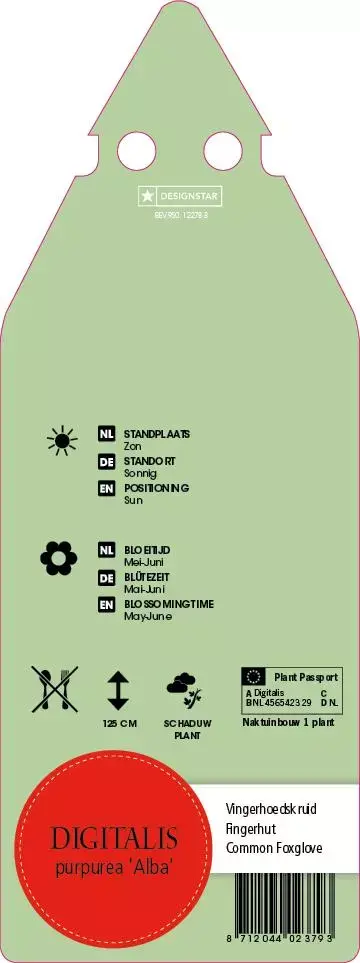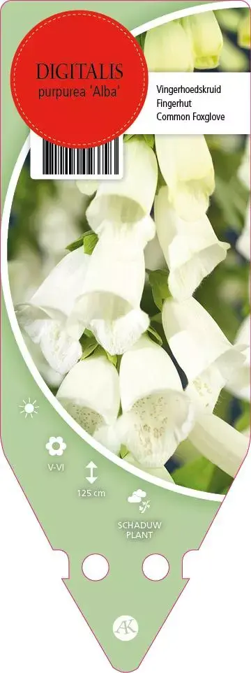 De vaste plant Digitalis Purpurea Alba (Vingerhoedskruid) is een zomerbloeier. Plant de Digitalis Purpurea Alba op een plek met zon, halfschaduw en plaats maximaal 5 planten per vierkante meter. Deze plant heeft een maximale hoogte van 1,5 m als volwassen plant. De bloemkleur is wit.