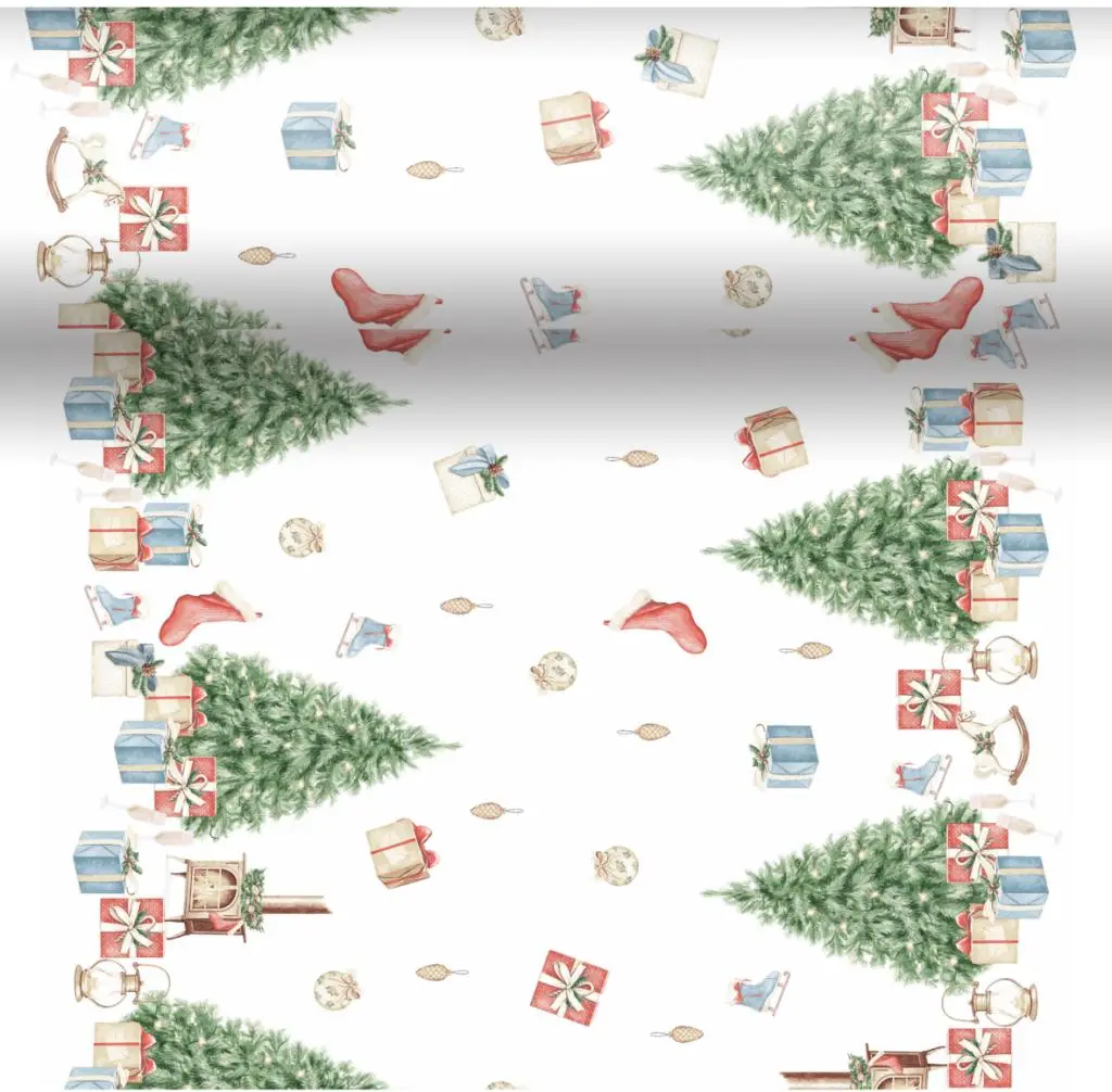 Deze Duni 3-in-1 rol 40x480cm in het tree and gift design is gemaakt van dunicel. Deze rol kan gebruikt worden voor 12 placemats (40x40cm), 2 tafellopers (20x240cm), of 4 tête à têtes (40x120cm). De rol is geperforeerd, en dus makkelijk te scheuren of te knippen naar jouw wensen. Ideaal voor de feestdagen.