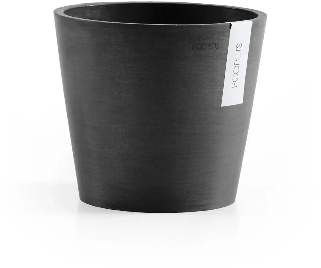De Ecopots Amsterdam 20 (Donker Grijs) is een compacte bloempot met een stoere, moderne uitstraling. Perfect voor kruiden of kleine kamerplanten op tafel of vensterbank. Handgemaakt van gerecyclede materialen.