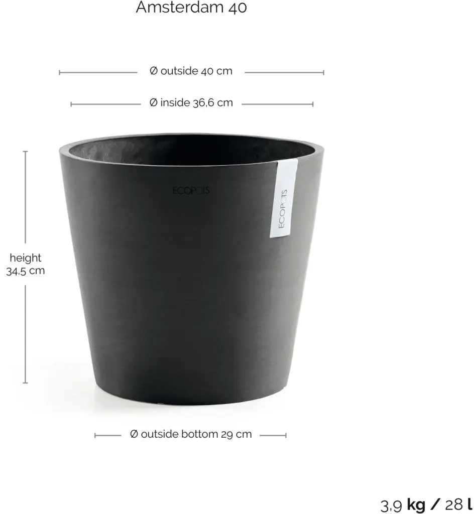 Met zijn rustige uitstraling en duurzame constructie is de Amsterdam Ø40 een ideale keuze voor wie een sterke, praktische en stijlvolle pot zoekt voor zowel binnen als buiten.