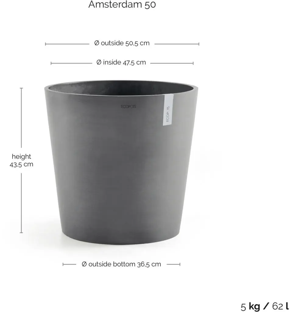 Ecopots Amsterdam Grijs Ø50 x H44 cm