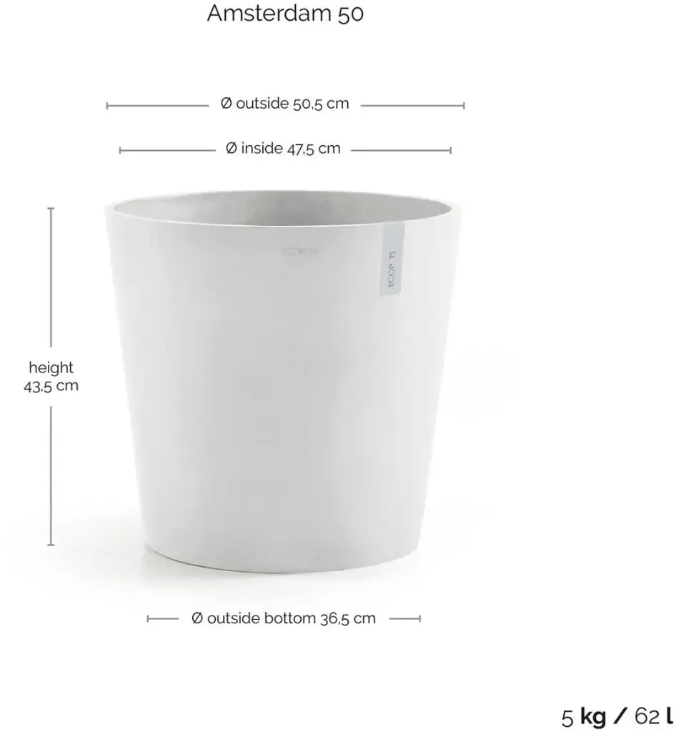 Ecopots Amsterdam Puurwit Ø25 x H22 cm koop je hier veilig online in de webshop van ons tuincentrum waarbij wij garant staan voor een goede service, beloofd! Heb jij nog vragen over Ecopots Amsterdam Puurwit Ø25 x H22 cm of de levering ervan? Neem dan gerust contact op met onze klantenservice of kom langs in ons tuincentrum in Amsterdam waar onze medewerkers je graag verder helpen. Tuincentrum Osdorp, alles voor huis, tuin en dier :)