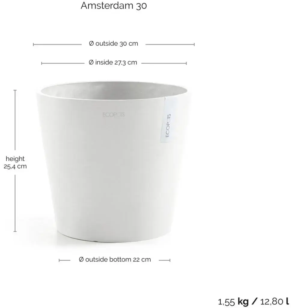 Ecopots Amsterdam Puurwit Ø30 x H26,3 cm koop je hier veilig online in de webshop van ons tuincentrum waarbij wij garant staan voor een goede service, beloofd! Heb jij nog vragen over Ecopots Amsterdam Puurwit Ø30 x H26,3 cm of de levering ervan? Neem dan gerust contact op met onze klantenservice of kom langs in ons tuincentrum in Amsterdam waar onze medewerkers je graag verder helpen. Tuincentrum Osdorp, alles voor huis, tuin en dier :)
