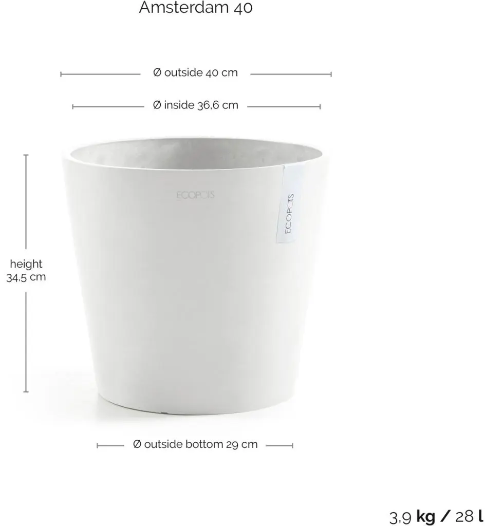 De Ecopots Amsterdam 40 (Puur Wit) combineert een frisse kleur met een middelgroot formaat. Ideaal voor woonkamers, tuinen en terrassen. Handgemaakt uit duurzame, gerecyclede materialen.