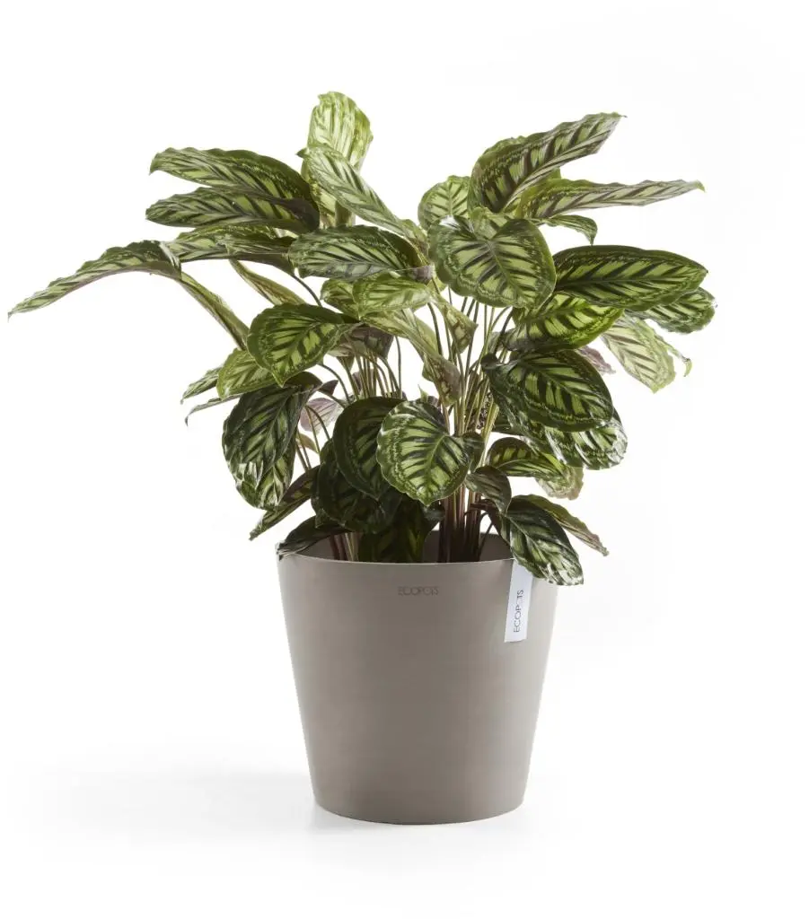 De Ecopots Amsterdam is ideaal voor wie op zoek is naar een combinatie van duurzaamheid en stijl. De neutrale taupekleur laat zich makkelijk combineren en geeft elke ruimte een rustige, elegante uitstraling.