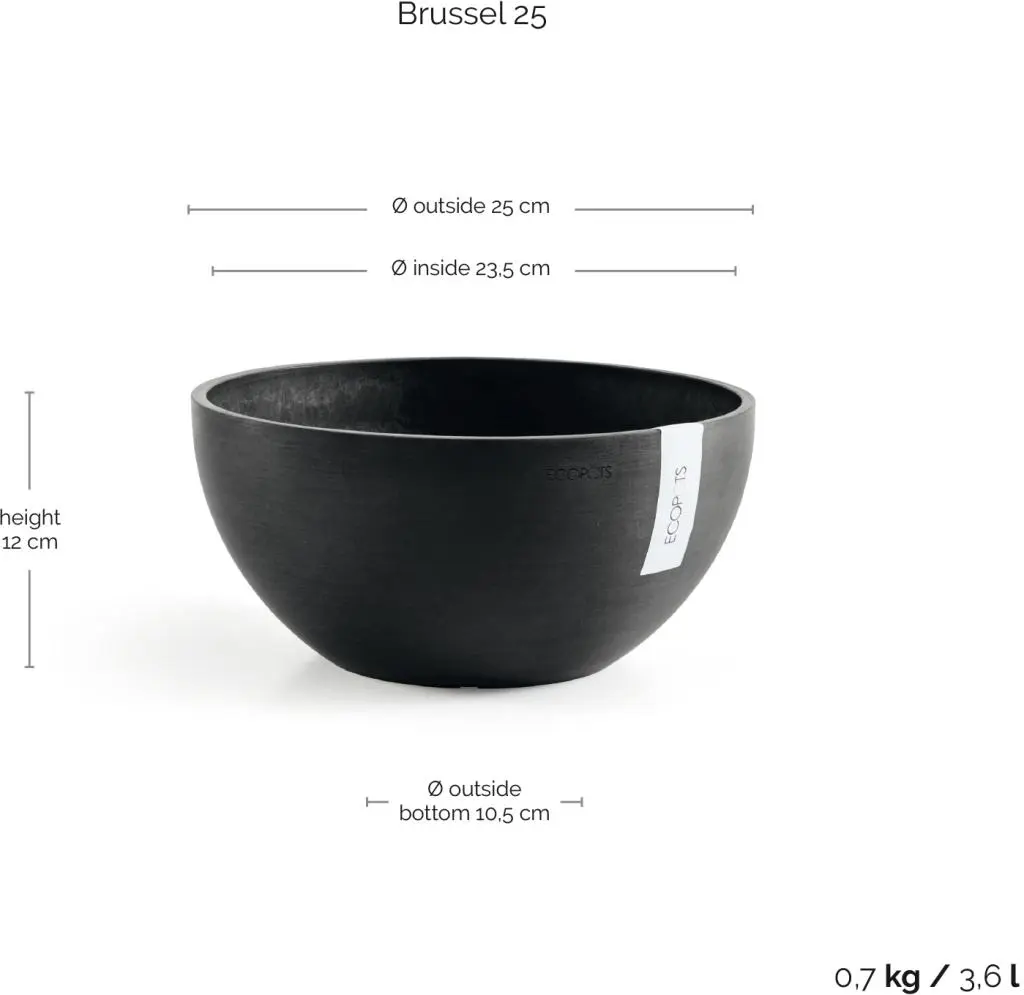 De Ecopots Brussels 25 (Donker Grijs) is een compacte, ronde bloempot met een tijdloos ontwerp. Perfect voor kleinere planten of kruiden in huis, op balkon of terras. Vervaardigd uit duurzame gerecyclede materialen en voorzien van een subtiele, handgemaakte textuur.