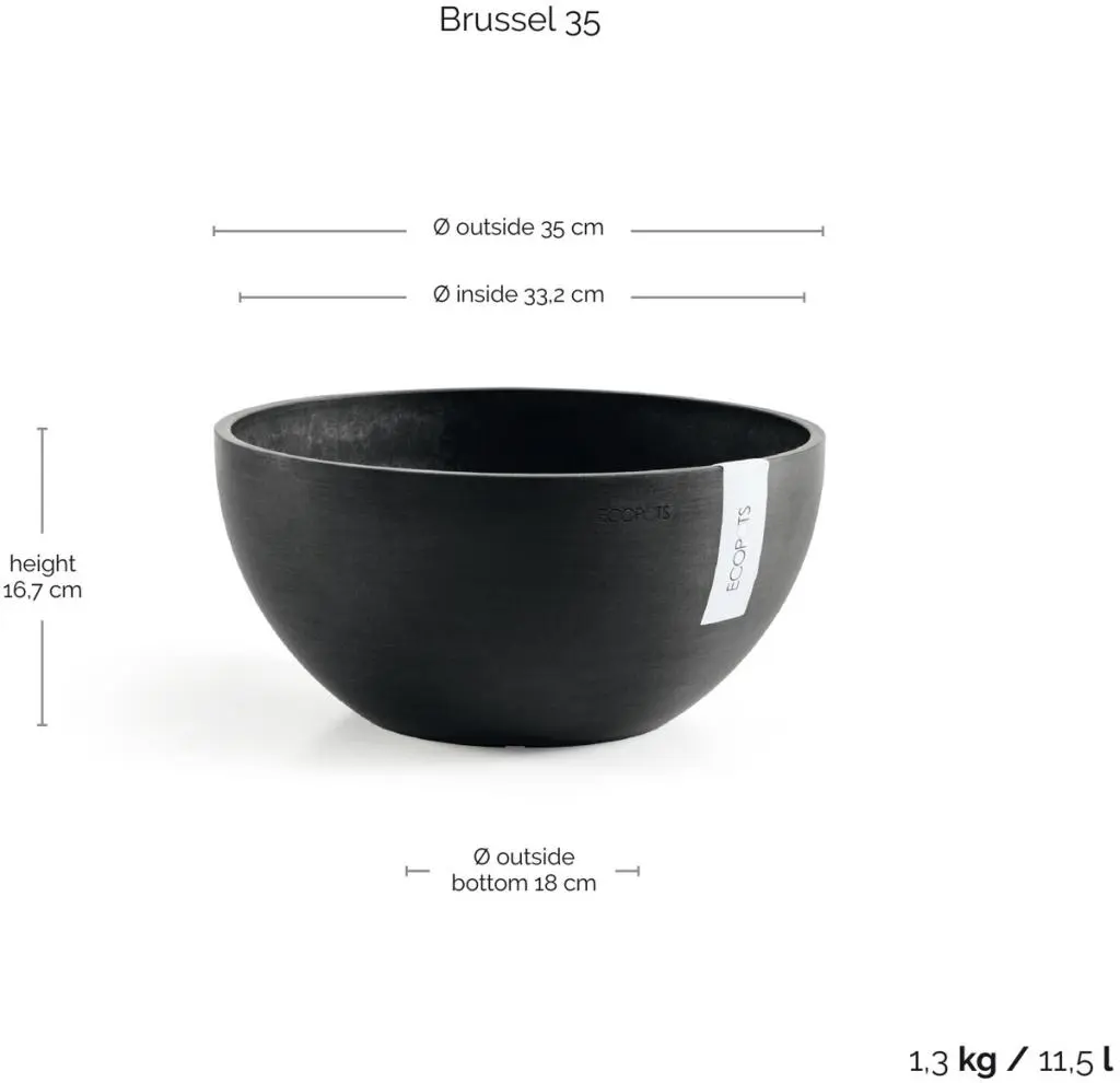 De Ecopots Brussels 35 (Donker Grijs) is een elegante ronde pot voor kamerplanten en kruiden, met de herkenbare handgemaakte finish. Het tijdloze design past in elk interieur. Gemaakt van gerecyclede kunststoffen.