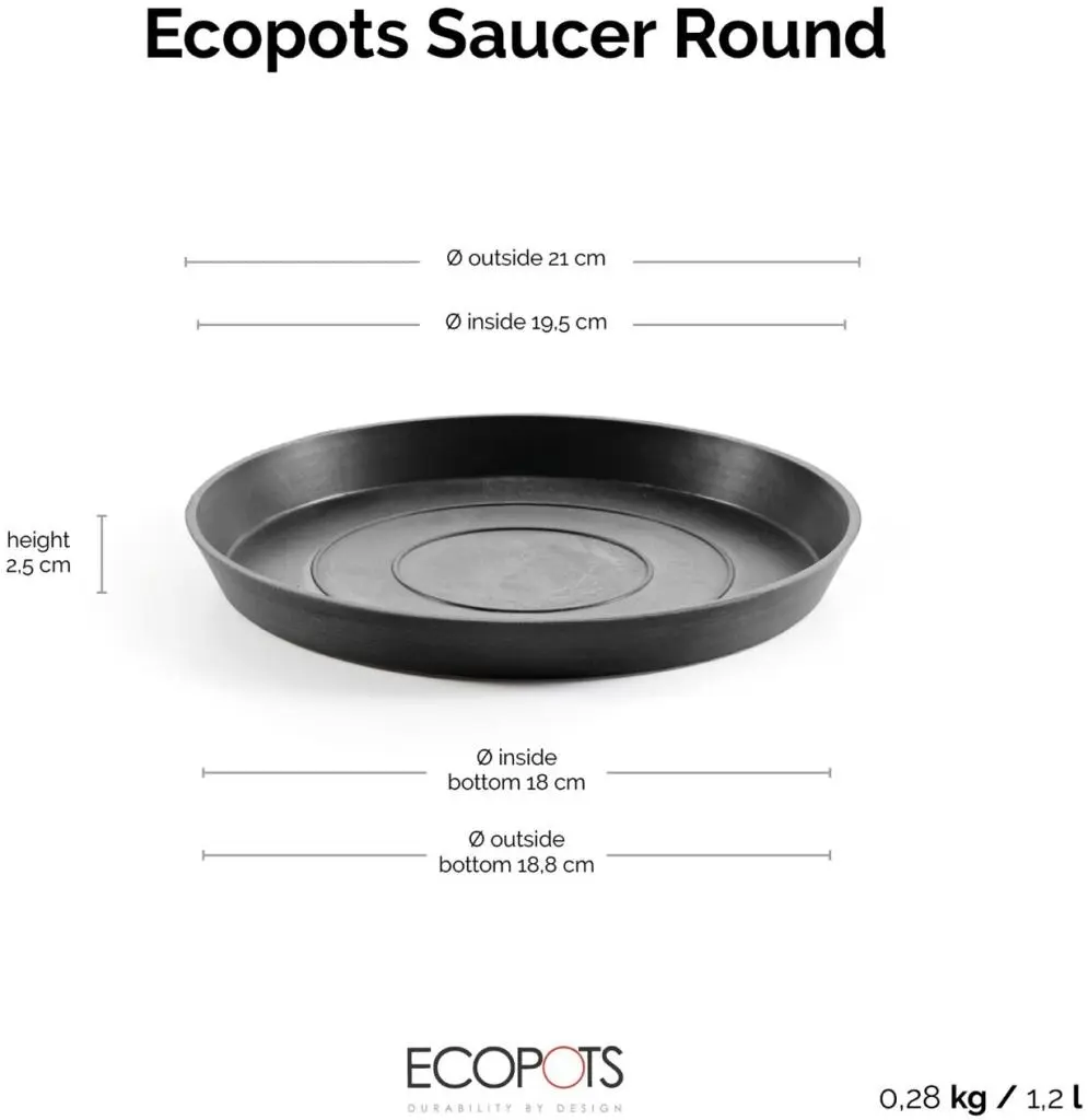 Ecopots Saucer Rond Donkergrijs Ø21 x H2,5 cm