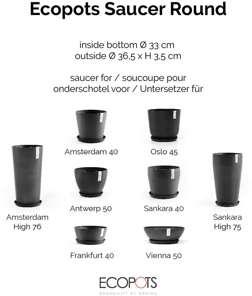 Ecopots Saucer Rond Donkergrijs Ø36,5 x H3,5 cm