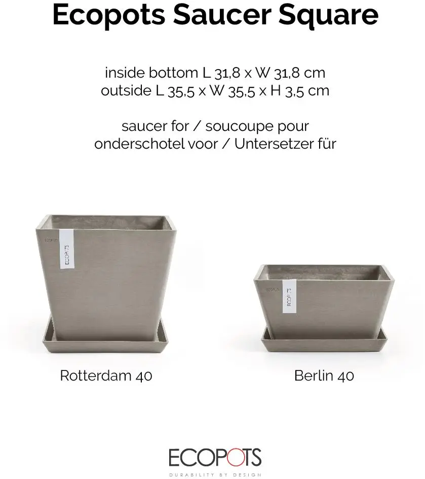Ecopots Saucer Square Taupe L35,5 x B35,5 x H3,5 cm